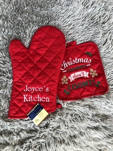 Personalized Embroidered Christmas Red Oven Mitt And Holiday Pot Holder Ebay